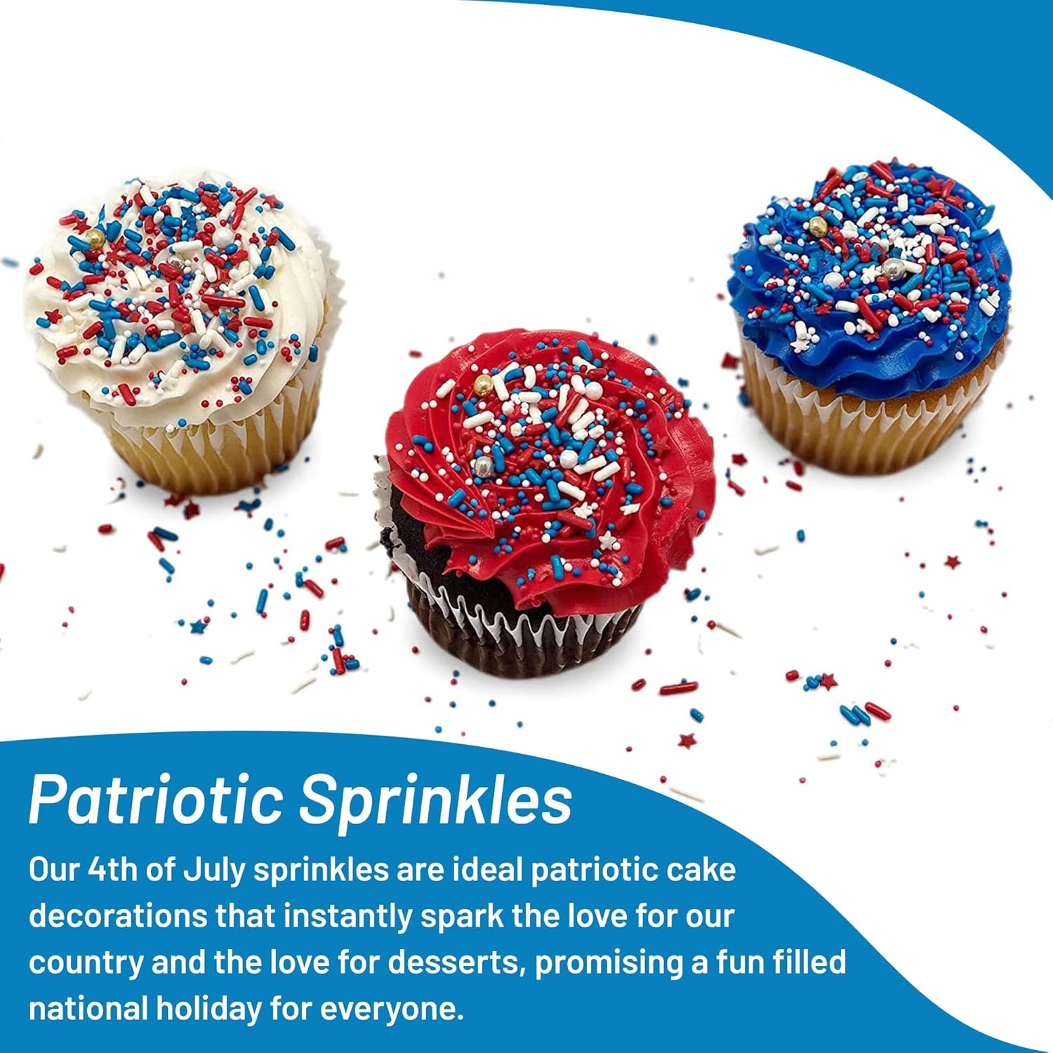 Celebrate every patriotic occasion with Sprinkle Me This 4th of July Patriotic Sprinkle Mix. This vibrant red, white, and blue sprinkle blend is perfect for decorating desserts for the 4th of July, Memorial Day, Veterans Day, and other patriotic celebrations. Designed to instantly elevate cakes, cupcakes, cookies, and more, this mix adds a festive and celebratory finish to any sweet creation.