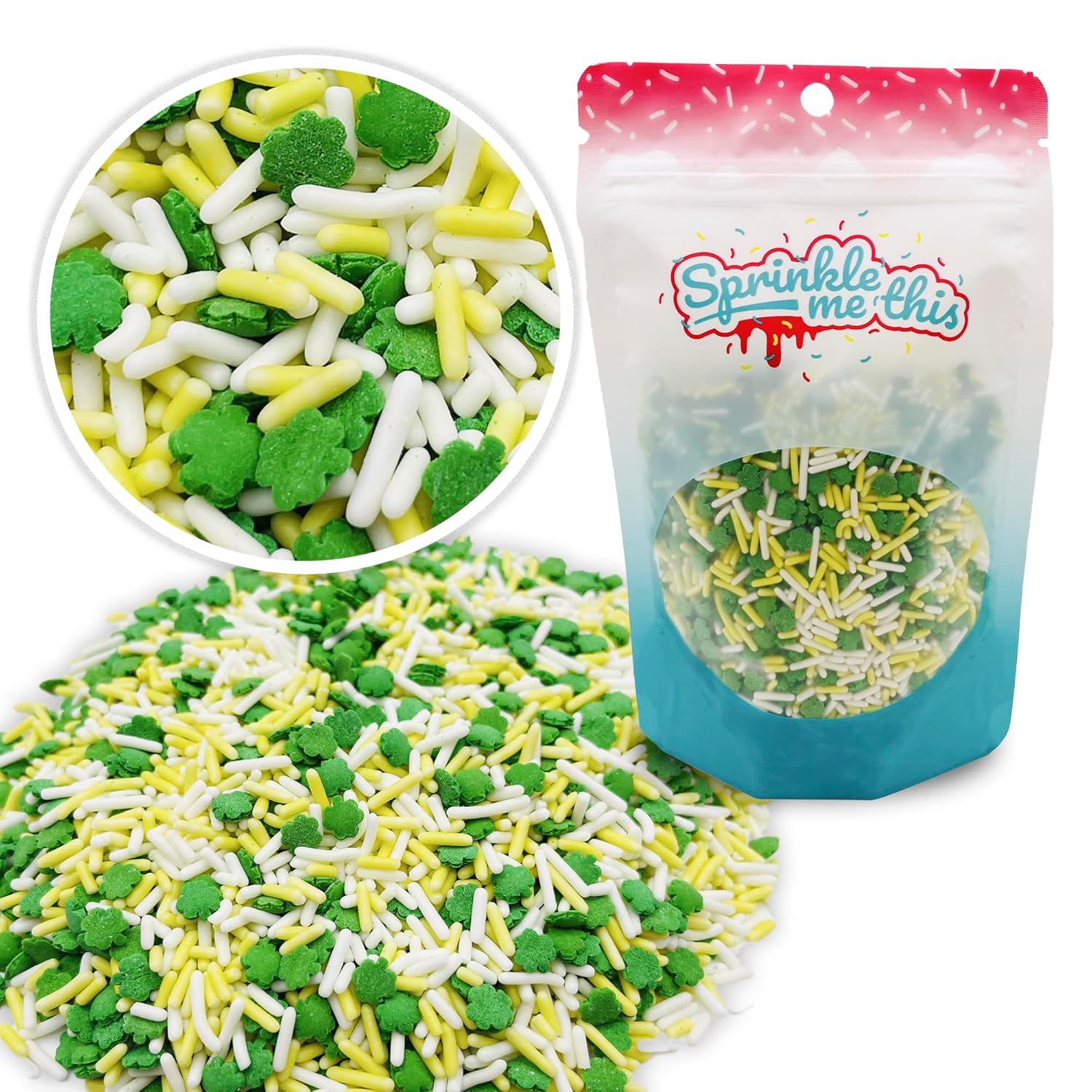 St. Pat’s Luck Sprinkle Blend – Shamrock, White & Yellow Sprinkles | 4, 8 & 12 oz Bags