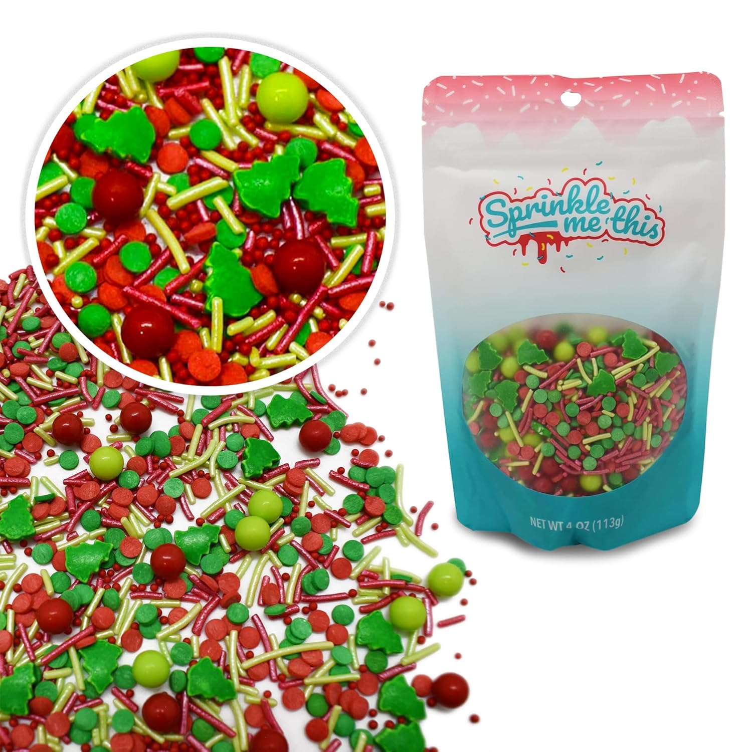 - The Gift of Christmas isn't what you find under the tree, but the love of the holiday season. This resealable bag is filled with sprinkles inspired with the Christmas season. It features red and green jimmies, red and green pearls, and Christmas tree quins.